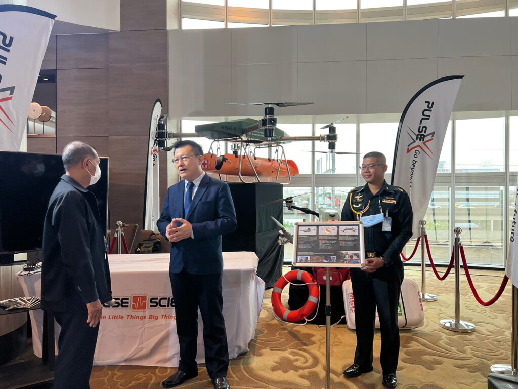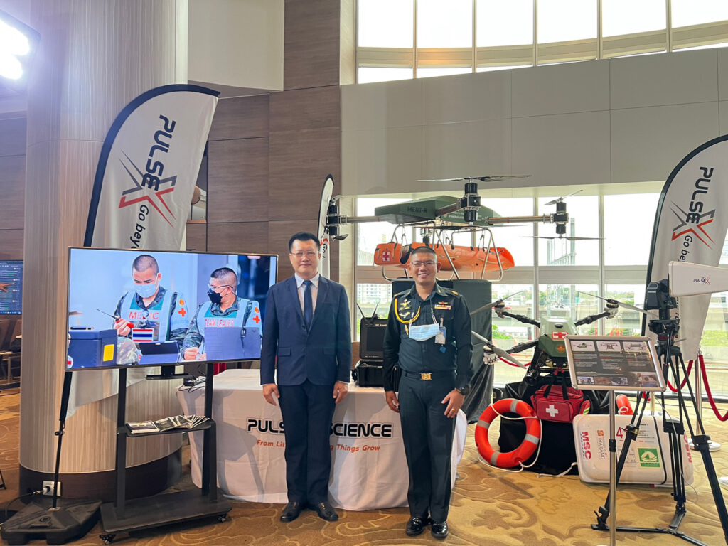 เมื่อวันที่ ( 24 – 25 ก.ค. 66 ) เวลา 09.30 น. ที่ห้องแกรนด์บอลรูม ชั้น 4 โรงแรมมิราเคิล แกรนด์ คอนเวนชั่น หลักสี่ กรุงเทพมหานคร ทาง PulseX ได้นำอากาศยานไร้คนขับ (โดรน ) Ambulance Drone รุ่น Rapid-Mert และ Mert-R “โดรนกู้ชีพฉุกเฉิน” การใช้โดรนช่วยขนส่งอุปกรณ์กู้ชีพไปยังผู้ประสบภัยได้รวดเร็วกว่ารถพยาบาล สอดคล้องกับบริบทและความเสี่ยงในพื้นที่